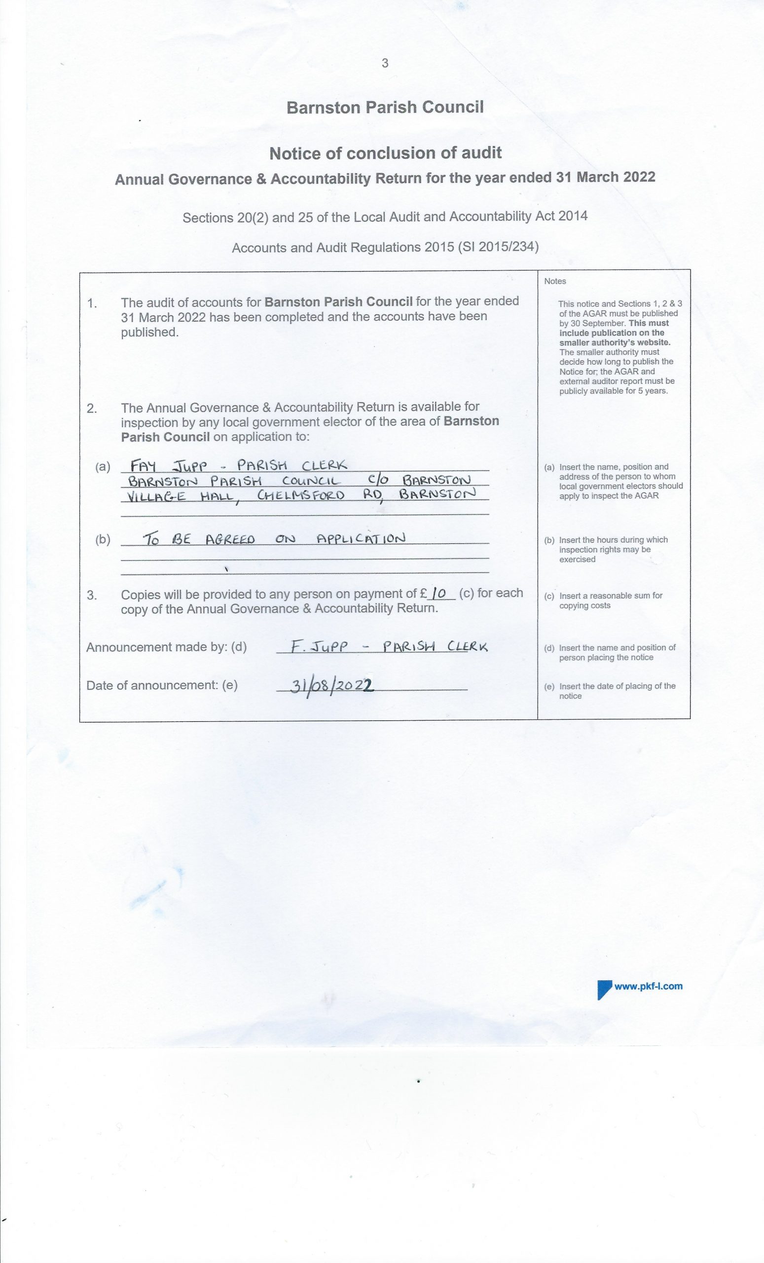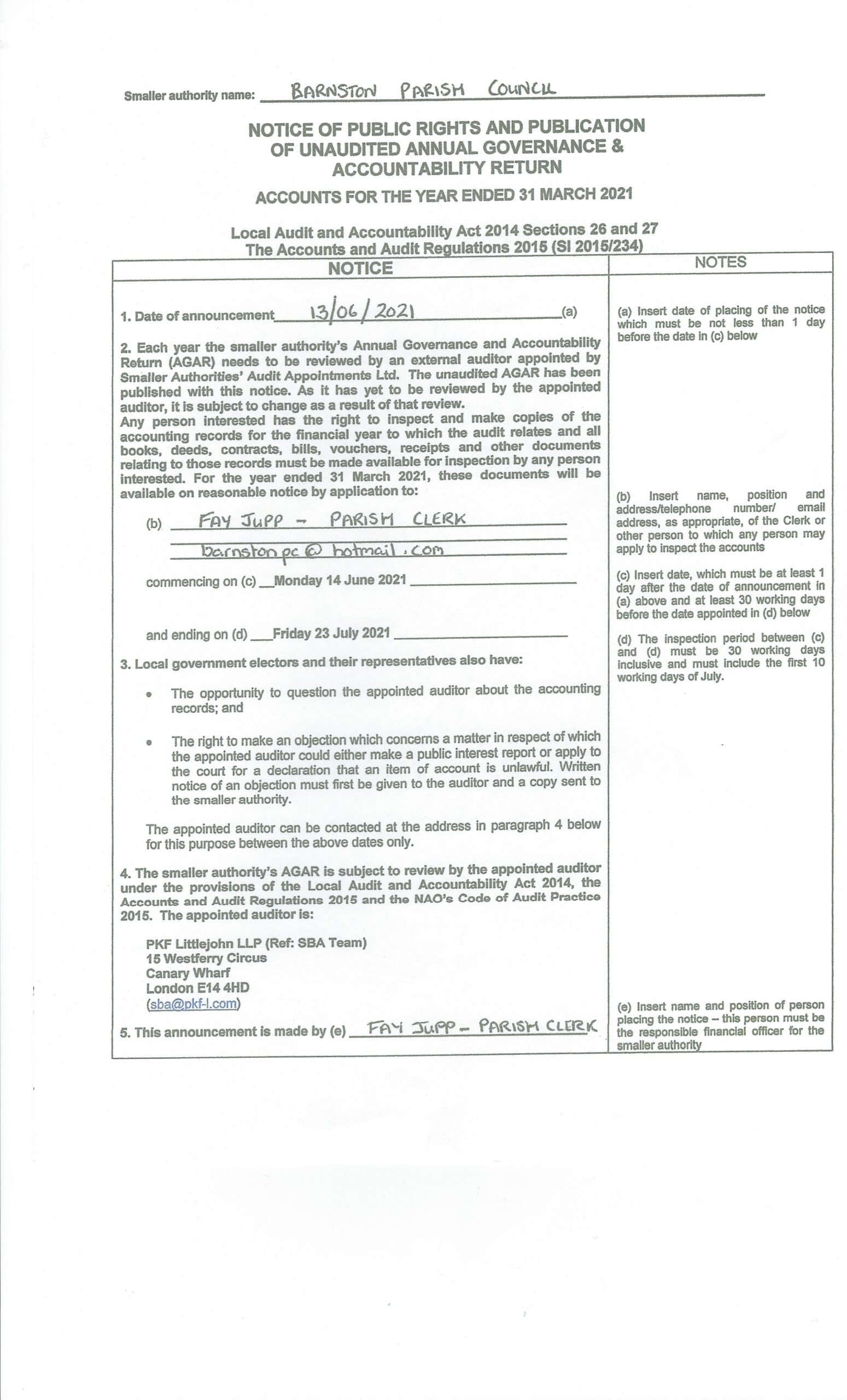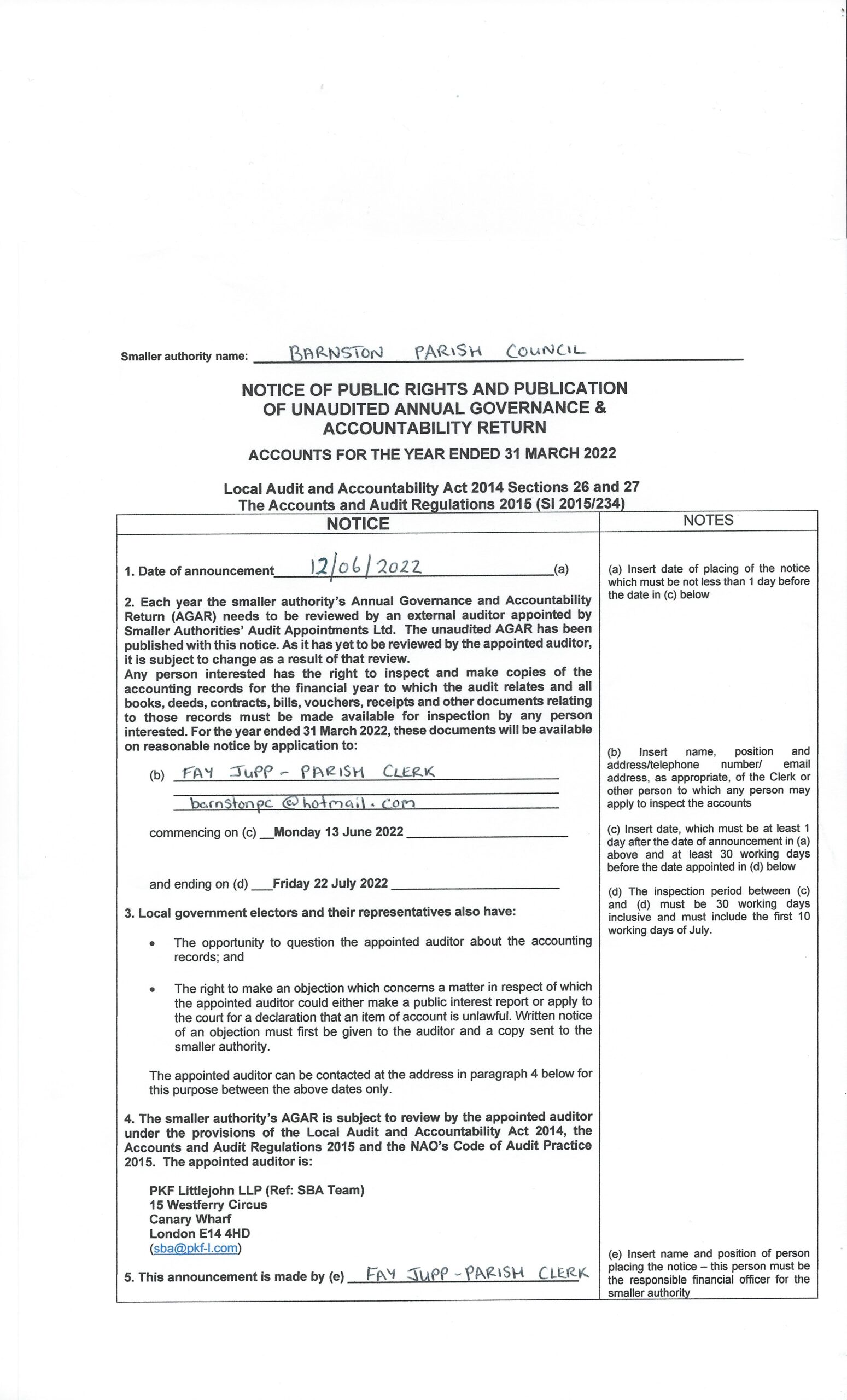 Notice of Public Rights and Publication of unaudited AGAR 2022