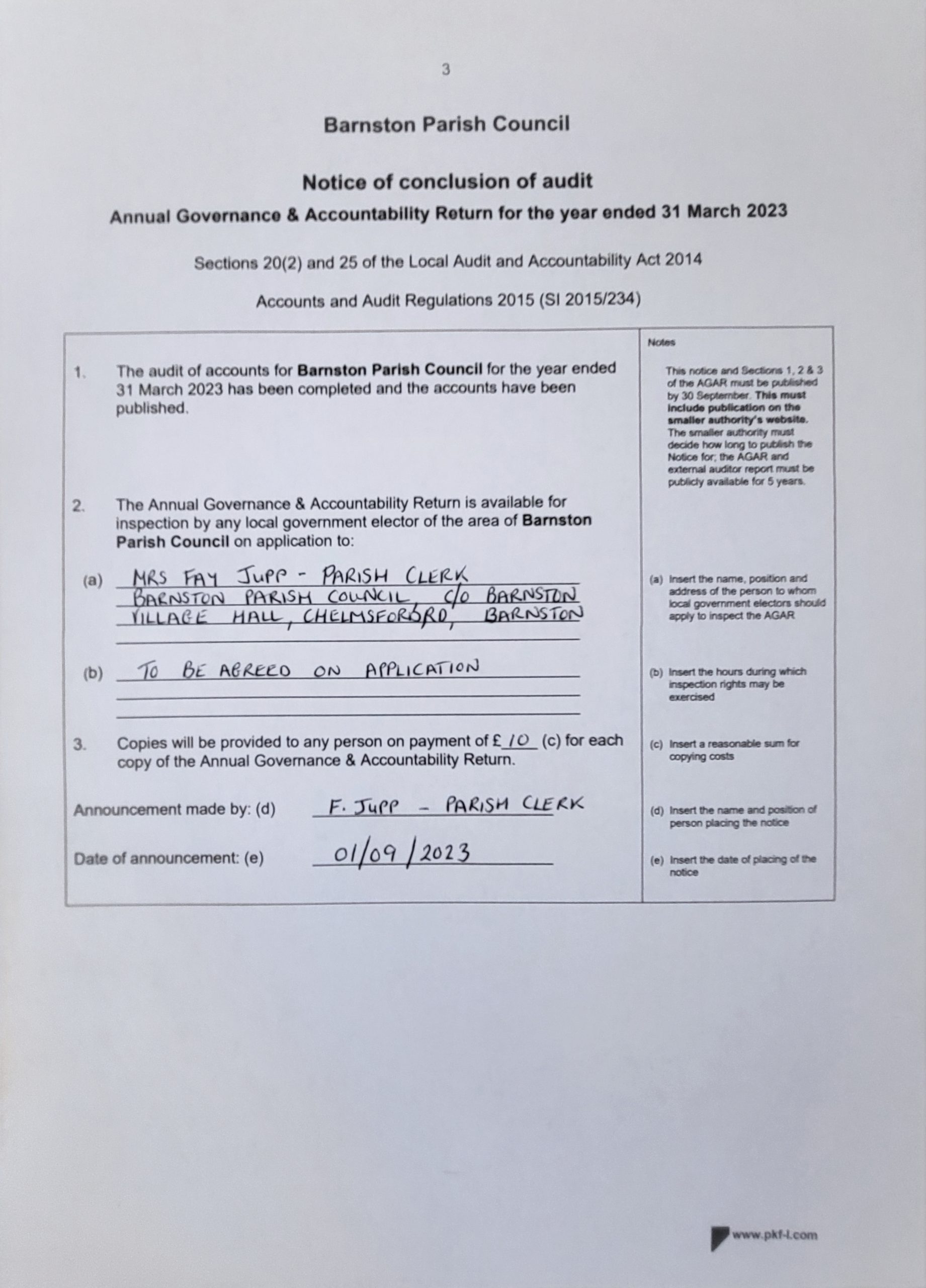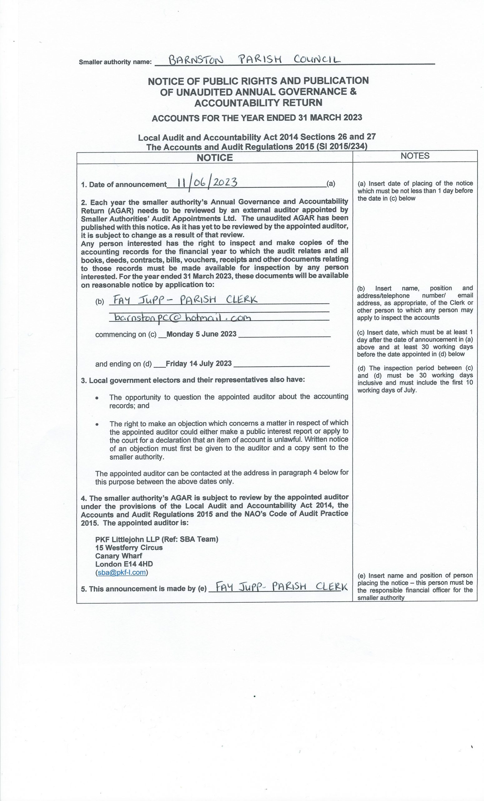 Notice of Public Rights and Publication of unaudited AGAR 2023