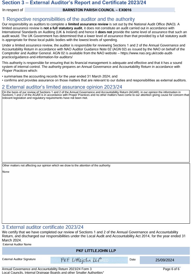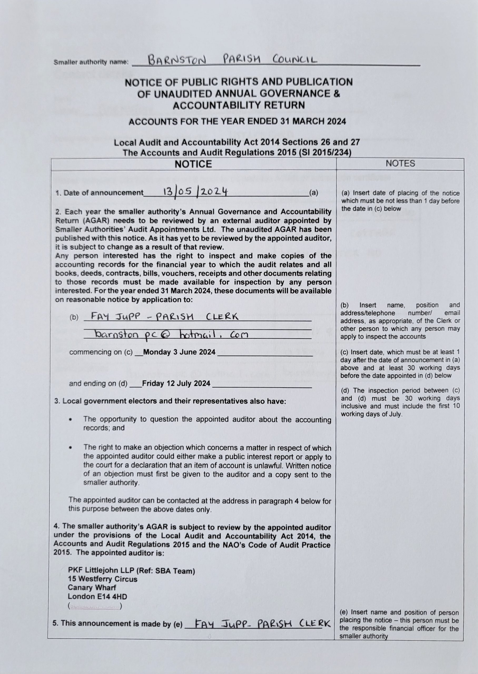 Notice of Public Rights and Publication of unaudited AGAR 2024
