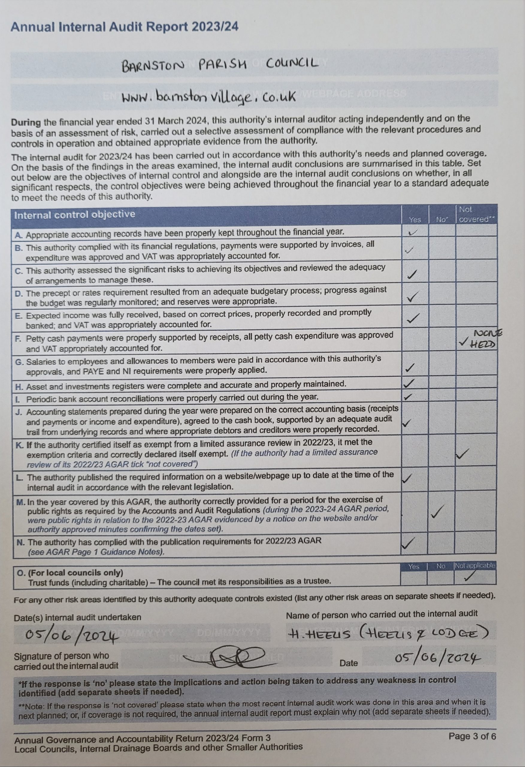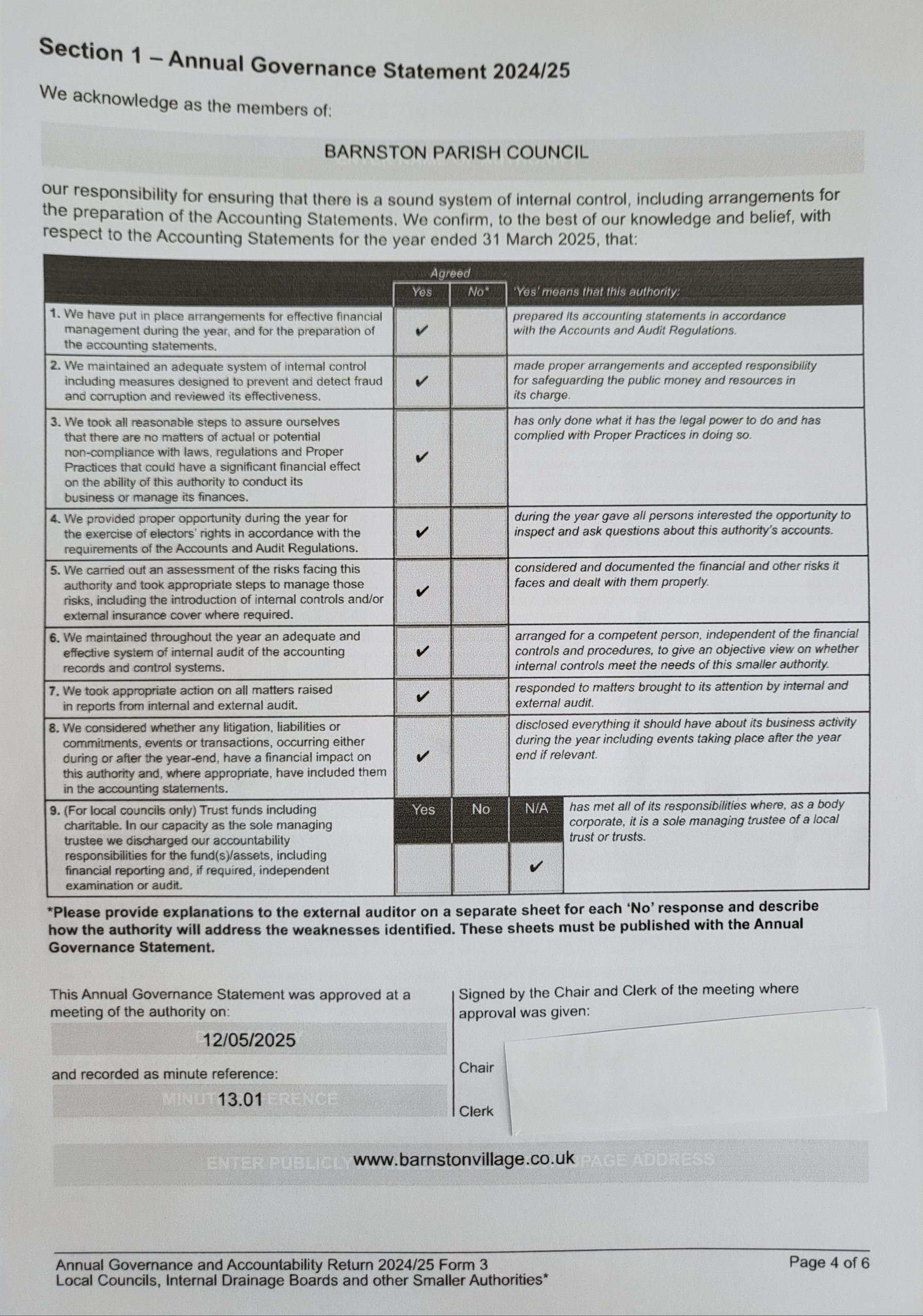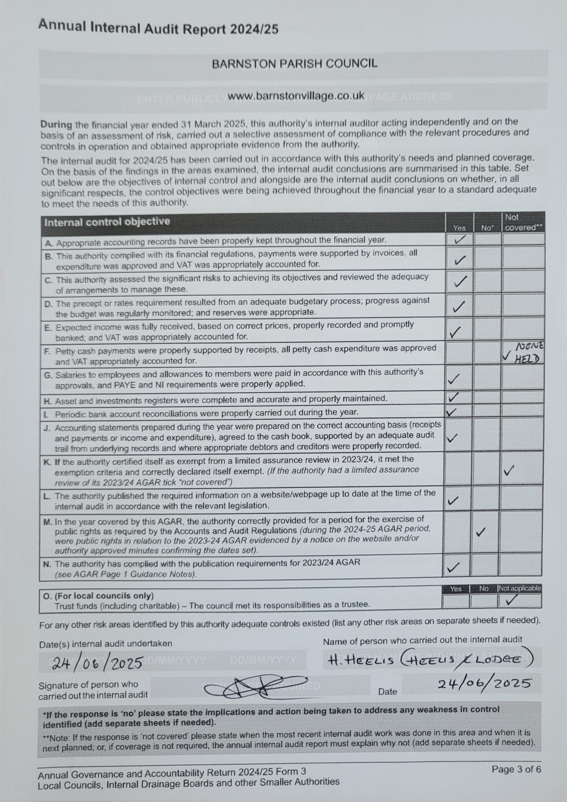 Landscape Management Plans for areas managed by Barnston Parish Council