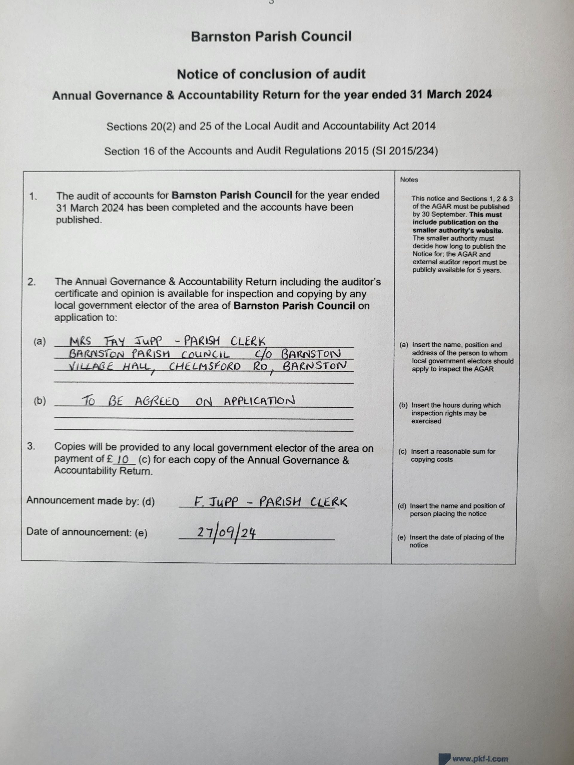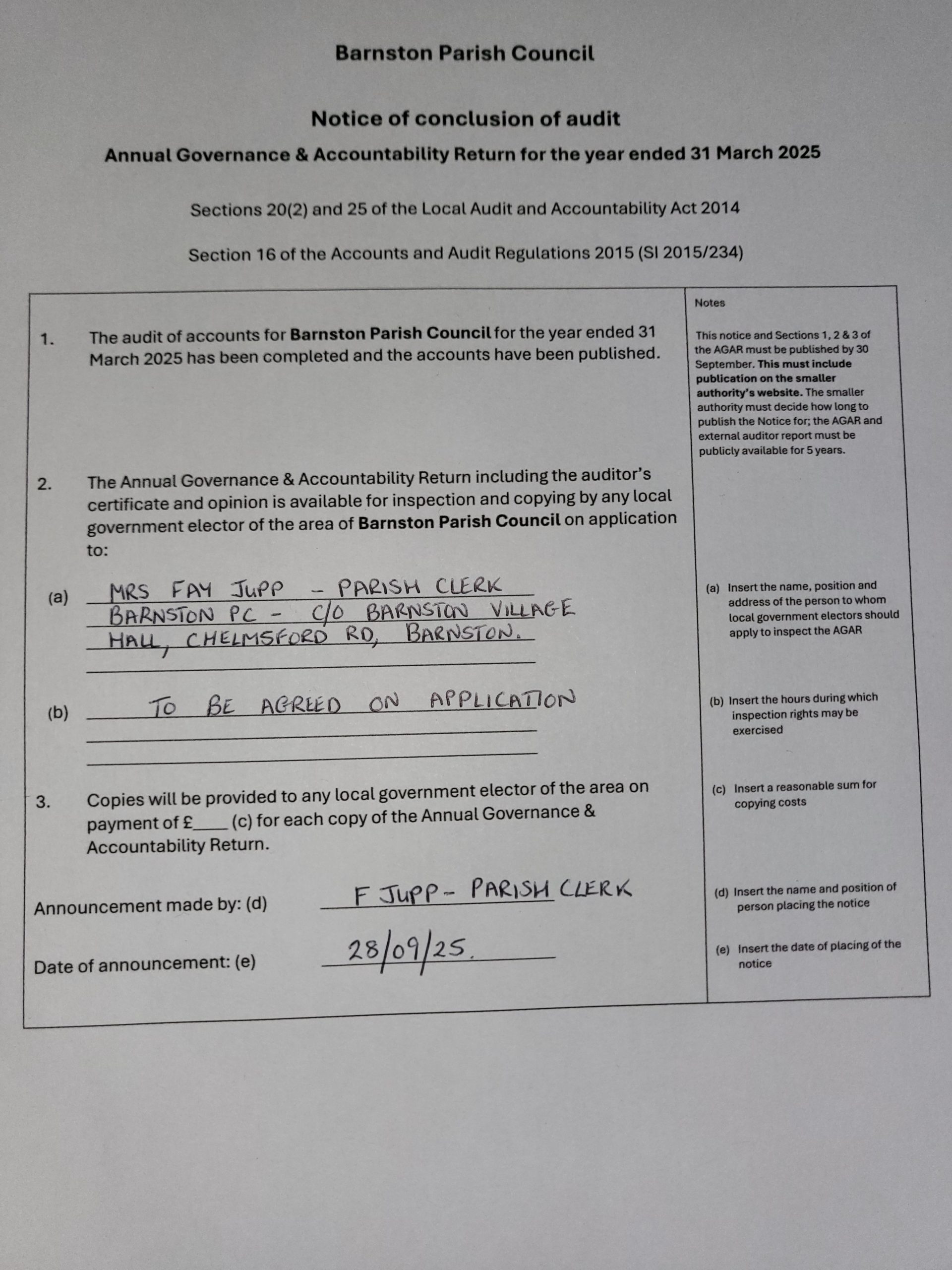 Email: cllrloveday@uttlesford.gov.ukTo contact members of the Parish Council please email clerk@barnston-pc.gov.uk