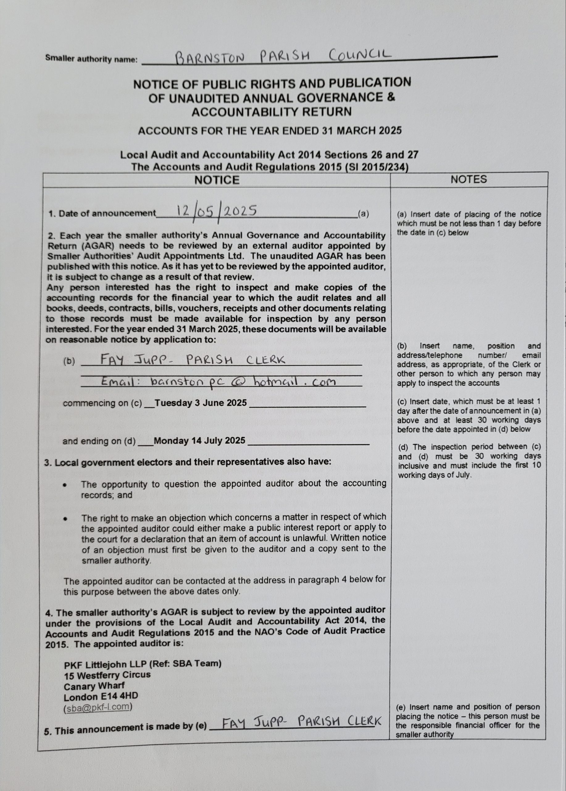 Notice of Public Rights and Publication of unaudited AGAR 2025